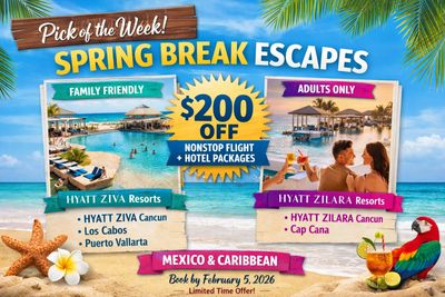 Taxes, fees, and transfers may apply. Pricing varies by departure city, travel dates, and resort. Limited availability. Offer valid for bookings made through 2/5/2026. Pricing subject to change.
